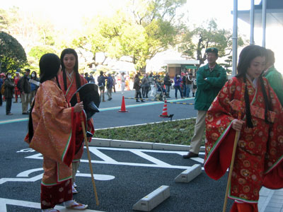武者行列を目の前にして立っていると、子どもたちが