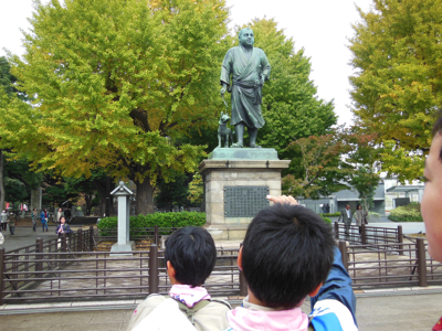 上野の西郷隆盛像近くの焼き肉の匂いにも負けず…