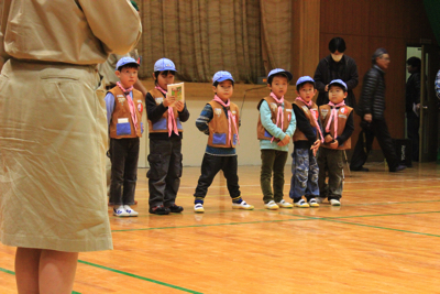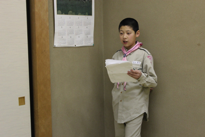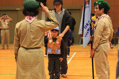 「ビーバースカウトのやくそく」と「ビーバーのきまり」を宣誓。