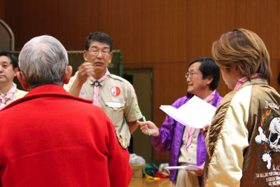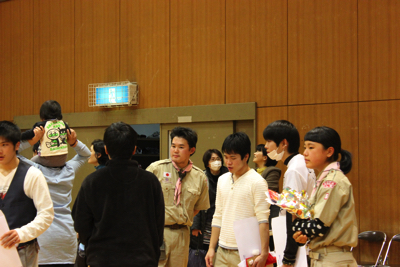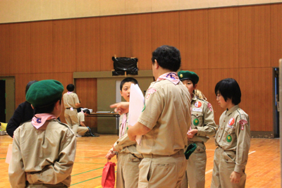 指導者はホール内の準備・打ち合わせ・スカウトの出欠確認と大忙し。