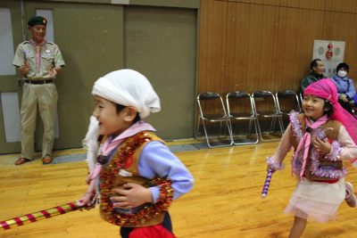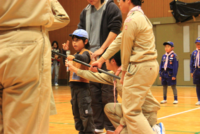 ベンチャーやボーイの上級生を見ながら、見よう見まねで動くカブやビーバー隊
